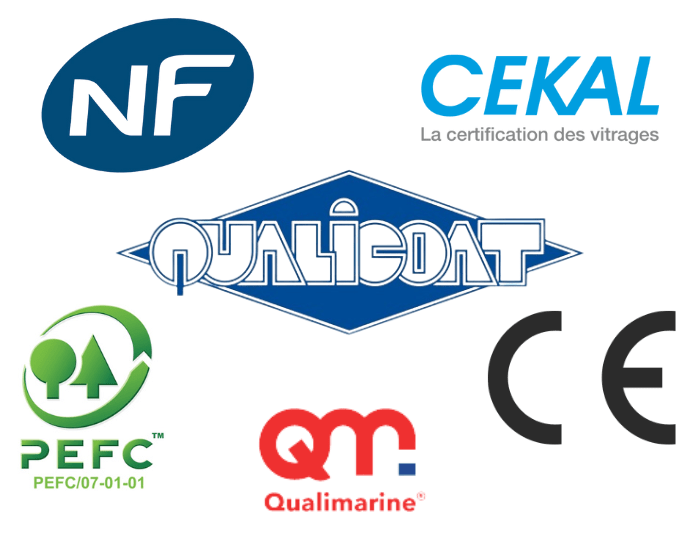 - Qualimarine : label de haute exigence reconnu en France. Il atteste de la résistance et de la tenue des profilés aluminium thermolaqués dans le temps, face aux conditions météorologiques les plus extrêmes ! Ainsi, les menuiseries certifiées Qualimarine sont particulièrement adaptées au bord de mer et à l’environnement salin.