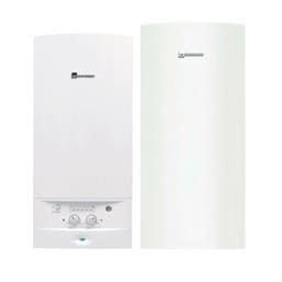 La chaudière gaz murale Egalis BAS NOx Plus de chez Elm leblanc est un modèle mixte pour chauffage et eau chaude. Elle est associée à un ballon de 50, 120 ou 150 litres qui peut être accolé à la chaudière ou déporté jusqu’à 15 mètres. Elle est disponible en version VMC (23 kW) et en version cheminée (24 kW).