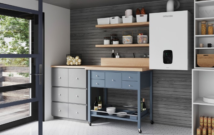 Avec ses dimensions, 60 cm de large pour les deux puissances disponibles, la chaudière Naema 3 Duo d’Atlantic s’intègre facilement dans votre logement ! Elle est ainsi idéale pour les grandes maisons ou grands appartements avec 2 salles de bain !